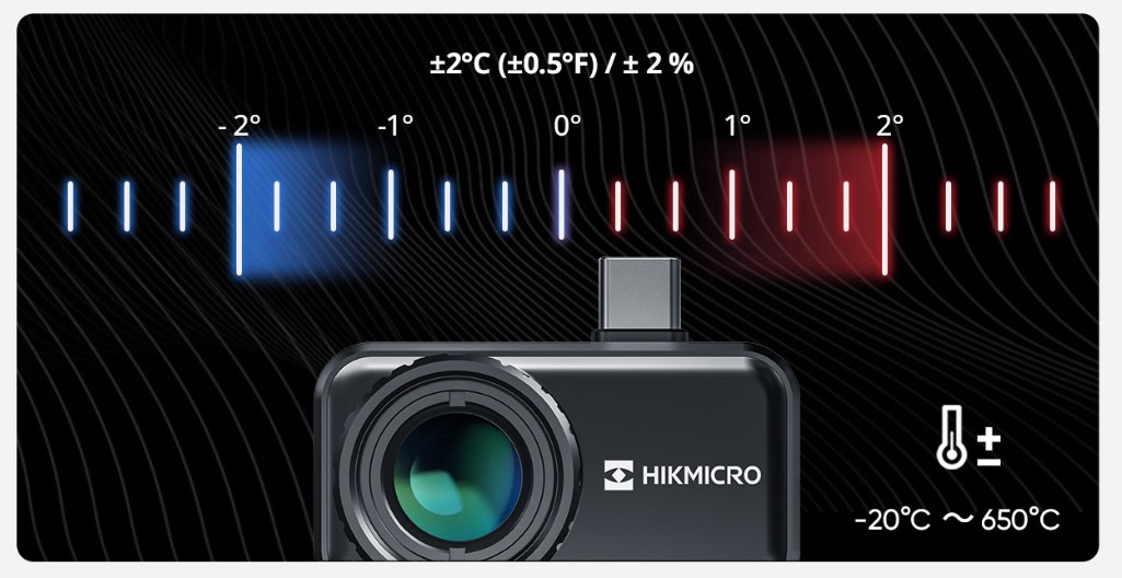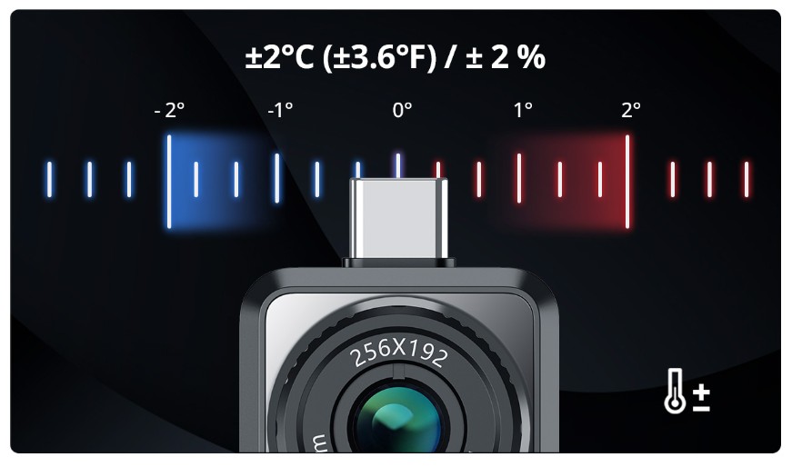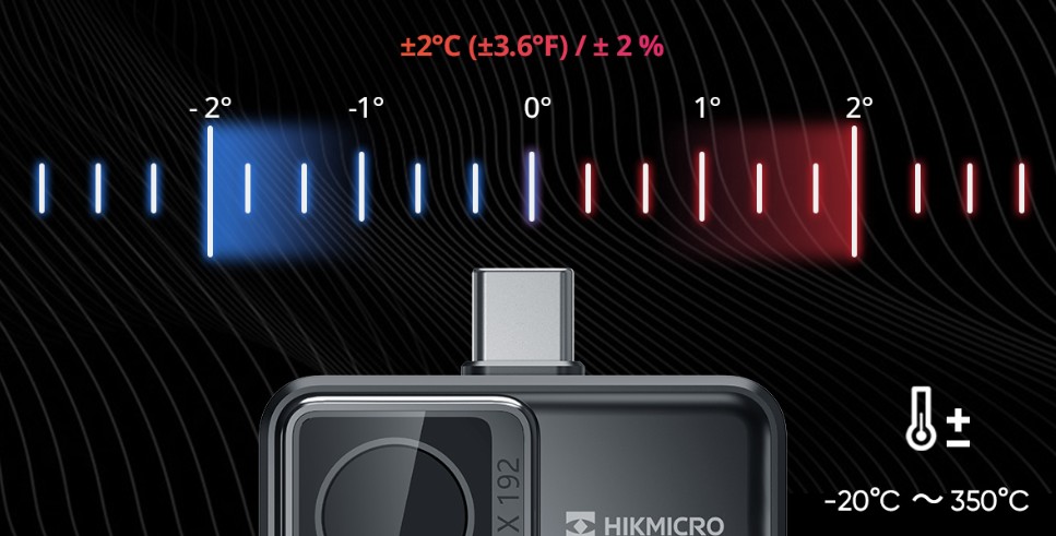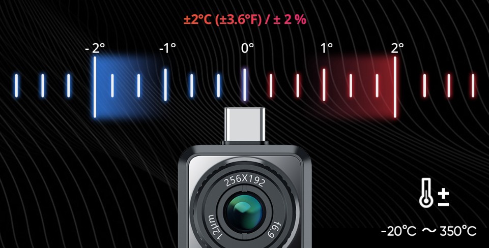 Mini2Plus misura accuratamente temperature da -20°C (-4°F) a 350°C (662°F), con una precisione di temperatura fino a ±2°C (±3.6°F) / ± 2 %.