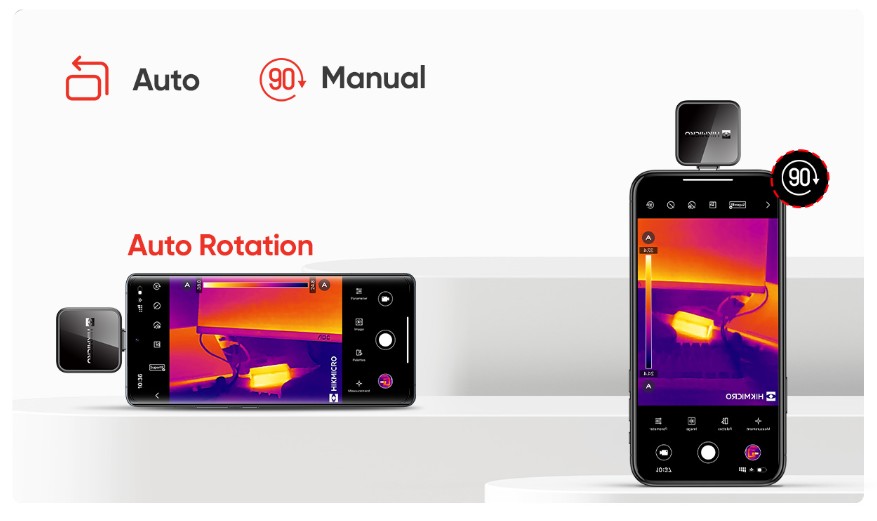 Con il HIKMICRO MiniE potrete godere della flessibilità della rotazione automatica e manuale delle immagini. Che tu stia scattando immagini termiche in modalità paesaggio o ritratto, la camera termica regola intelligentemente il display per una visualizzazione ottimale.