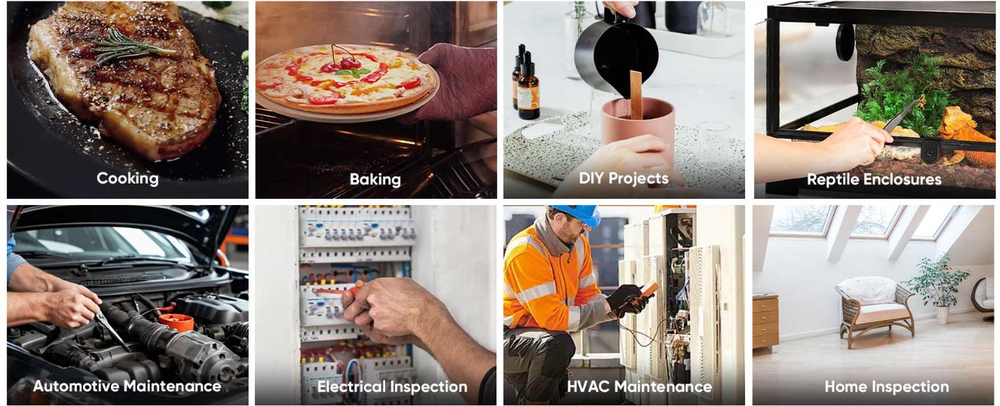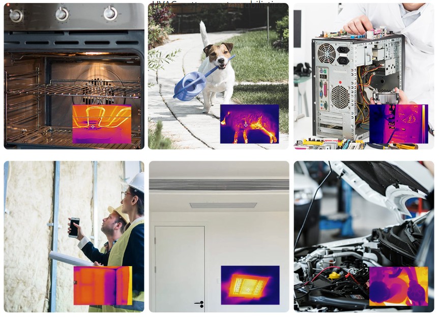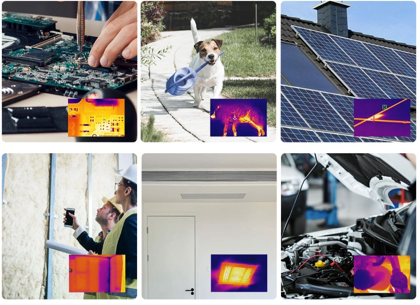 La camera termica MiniE è progettata per appassionati del fai-da-te e proprietari di case, ad esempio per cucina, panificazione, terrari per rettili, progetti fai-da-te, ispezioni domestiche, ecc., e viene anche utilizzata per la manutenzione automobilistica, ispezione elettrica, manutenzione HVAC.