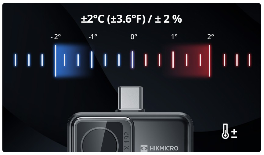 La HIKMICRO Mini-X è dotata di un rilevatore VOx ad alta sensibilità (NETD < 40 mK) con una risoluzione di 256 x 192 (49.152) pixel, insieme a algoritmi ottimizzati di miglioramento dell’immagine per fornire immagini termiche chiare.