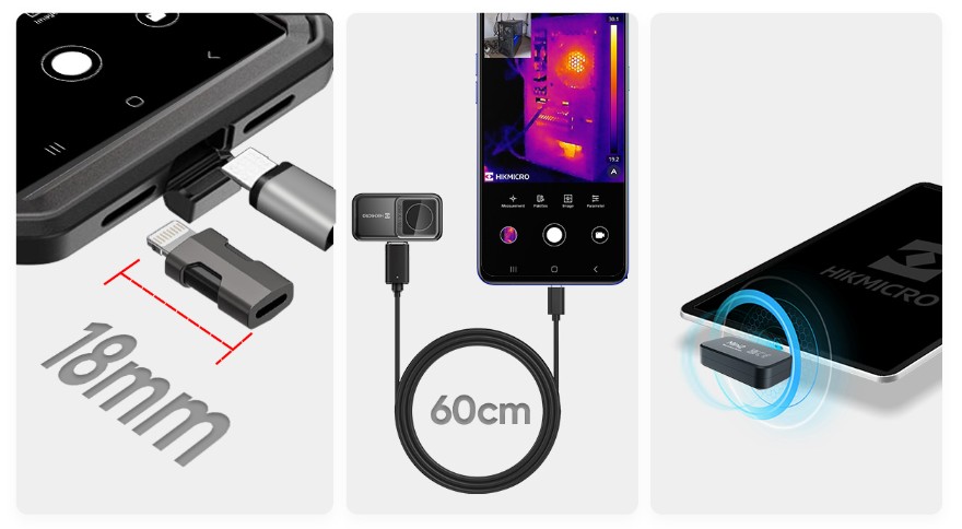 HIKIMICRO Mini2 V2 è compatibile con gli ultimi iPhone della serie 15 e con i dispositivi Android. Dotato di adattatore da Lightning a Type-C adatto per iPhone14 e modelli precedenti.