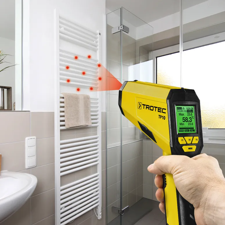 L’innovativa tecnologia laser multipunto del TP10 lo rende possibile: Invece di puntare l’obiettivo di misurazione con un laser singolo o rappresentare solamente le dimensioni dell’area di misurazione tramite doppio laser, il laser multipunto del TP10 unisce entrambe le tecnologie per il rilevamento preciso ma allo stesso tempo semplice dell’oggetto di misurazione.